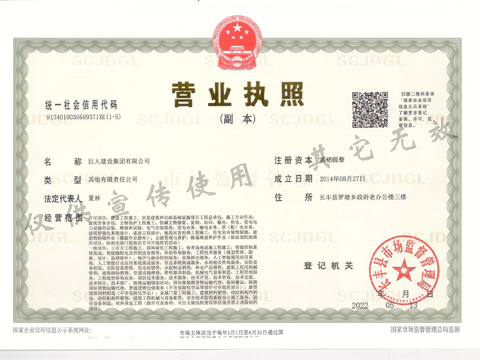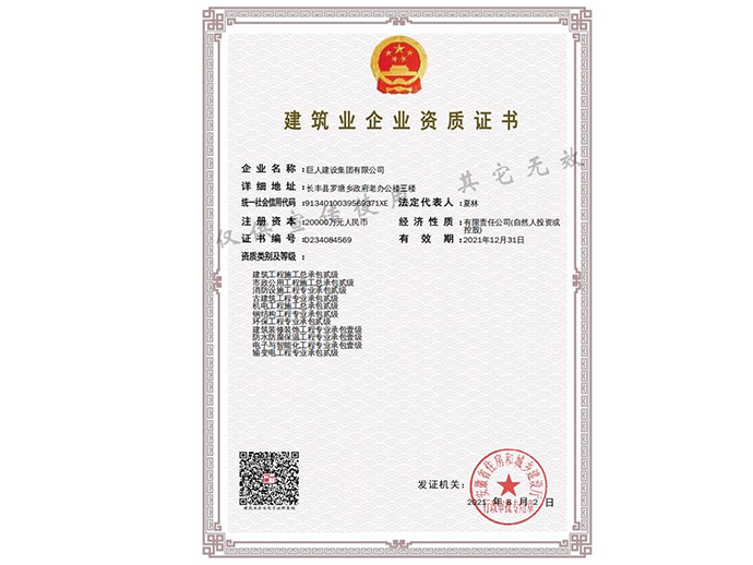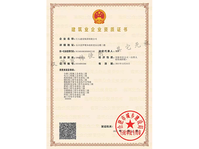 公司注冊資本,總資產陸仟捌佰捌拾捌萬元整。公司經營范圍:房屋建設工程;市政公用工程施工;公路施工工程;消防設施工程;園林、古建筑工程、鋼結構工程、城市及道路照明工程、水利水電工程、建筑裝修裝飾工程;建筑材料銷售,建筑機械銷售、租賃,工程招標代理;房地產開發、防水工程、五金批發、酒水銷售、勘察設計、廣告設計、五金批發、酒水銷售、勘察設計、廣告設計、制作、發布、園林苗木配置或銷售、體育場地工程施工。